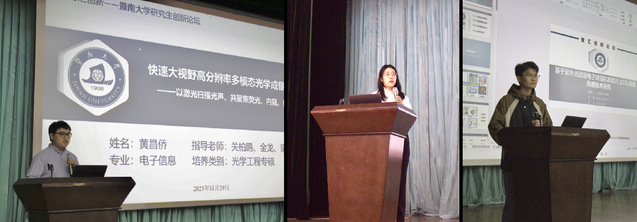 随后9位研究生围绕生物光子学、光声成像、光学材料与器件等领域做了精彩的学术汇报。评委对汇报逐一点评并提出了建议,现场师生观众积极提问,学术交流气氛活跃而热烈。