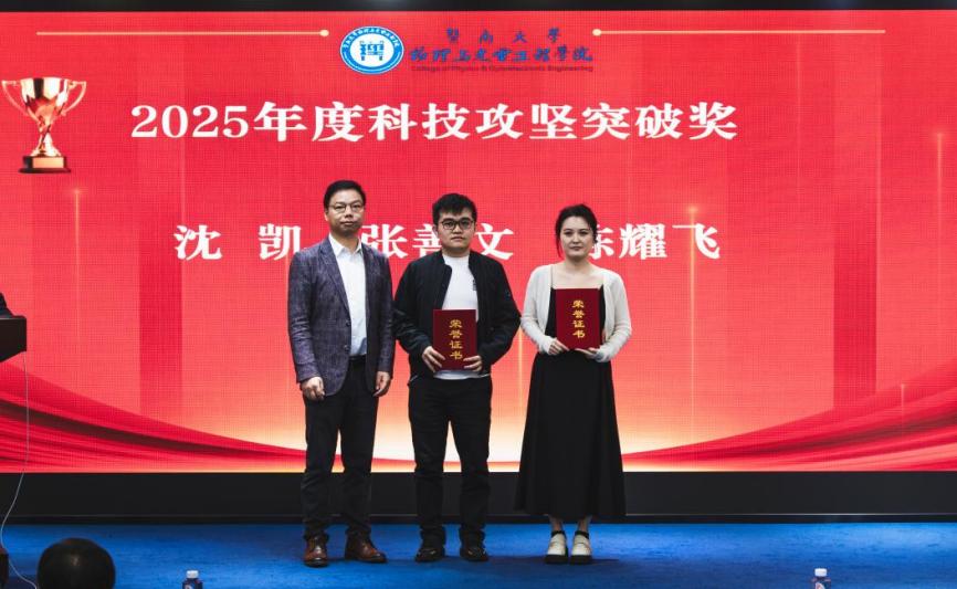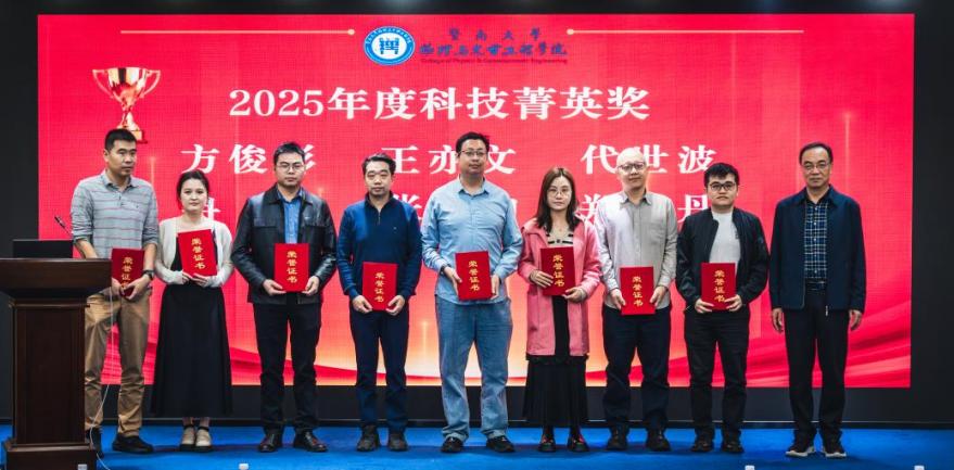 学院党委书记黄睿宣读2025年度学院科技工作先进个人名单。随后举行了表彰仪式,黄睿、关柏鸥和詹求强分别为29位自学院新组建以来在科研工作中表现突出的教师予以嘉奖。