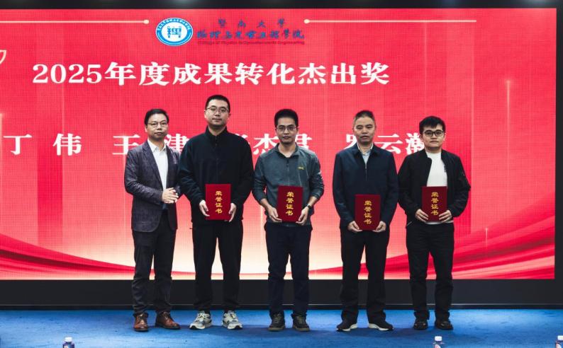 詹求强为成果转化杰出奖获得者颁奖并合影