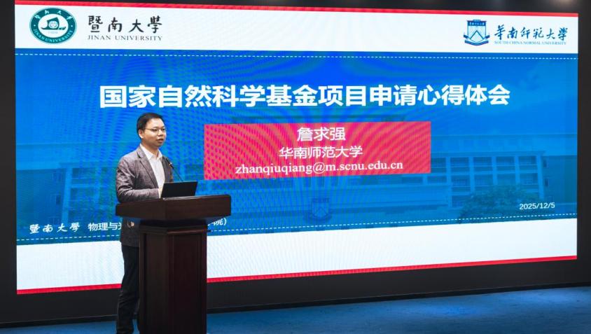 12月5日上午,物理与光电工程学院(理工学院)在石牌校区校友楼四楼会议厅召开2025年科技工作会议暨国家自然科学基金申报动员会。科学技术研究处处长陈填烽、研究生院副院长郭团、科学技术研究处项目管理科科长朱星谕,学院党政领导班子及教职工80余人出席会议。学院邀请了国家杰出青年科学基金获得者华南师范大学詹求强教授作专题分享。会议由学院副院长关贺元主持。