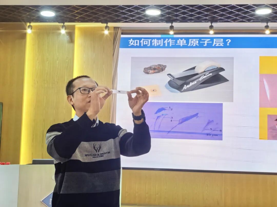 讲座后的互动环节更是将现场气氛推向高潮。谢伟广携专业实验器材,现场指导同学们亲手体验“透明胶带法”制备单原子层石墨烯。这被誉为“最廉价的诺贝尔奖”级实验,让原本抽象的物理知识瞬间变得可触摸、可感知,在同学们的惊叹与实践中,焕发出迷人的光彩。