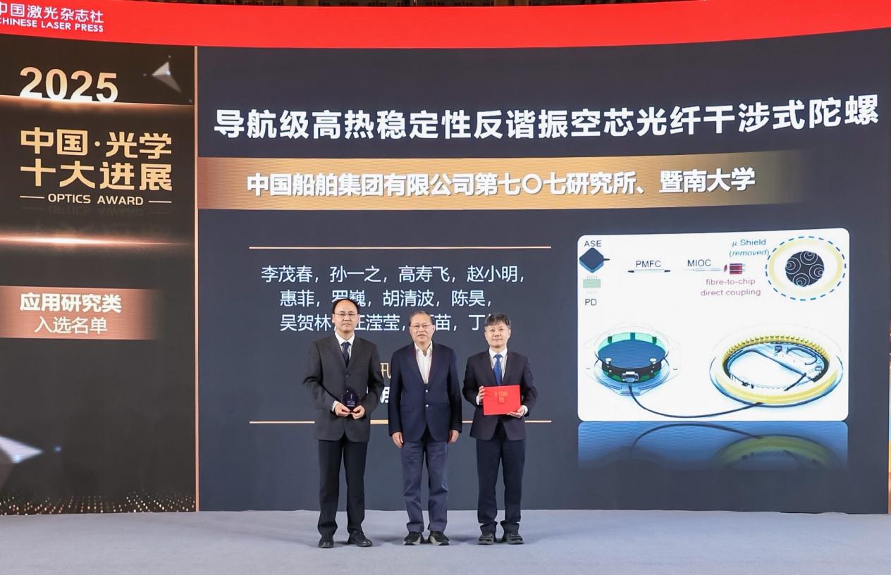 4月24-26日,2026中国光学十大进展高峰论坛暨颁奖典礼在太原举办,中国激光杂志社正式发布“2025中国光学十大进展”。经过评审委员会多轮遴选,10项成果入选“2025中国光学十大进展”(基础研究类),10项成果入选“2025中国光学十大进展”(应用研究类)。物理与光电工程学院(理工学院)关柏鸥团队成果“微尺度光纤光声光谱仪”和丁伟、汪滢莹团队成果“导航级高热稳定性反谐振空芯干涉式陀螺”同时成功入选“2025中国光学十大进展”(应用研究类)。
