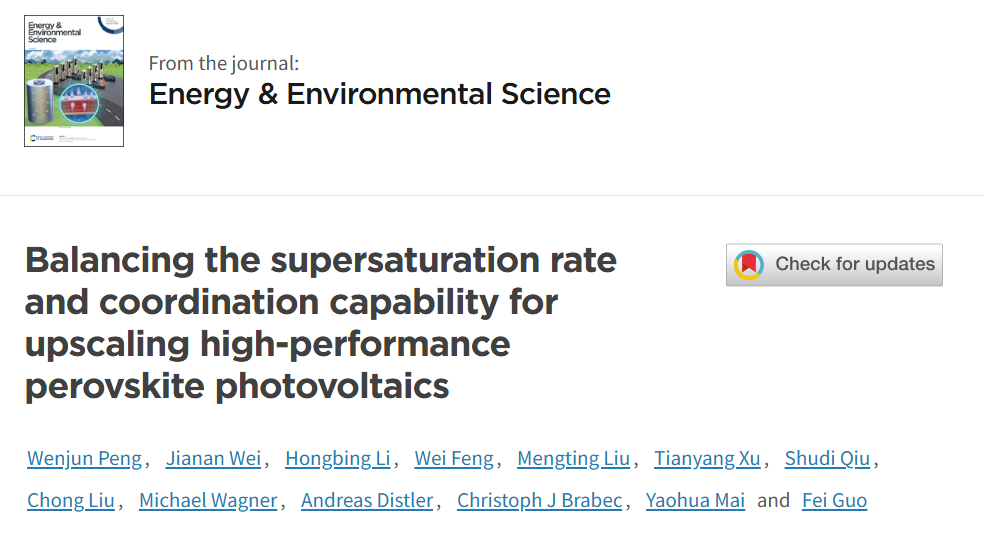 麦耀华教授团队在EES期刊发表重要研究成果:平衡前驱体过饱和速率和配位能力实现大面积钙钛矿薄膜可控制备